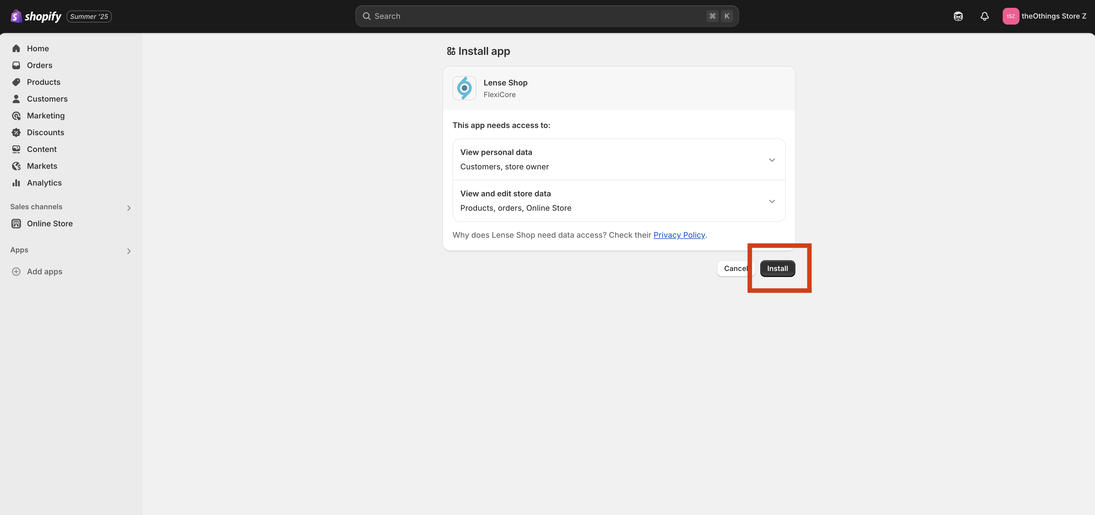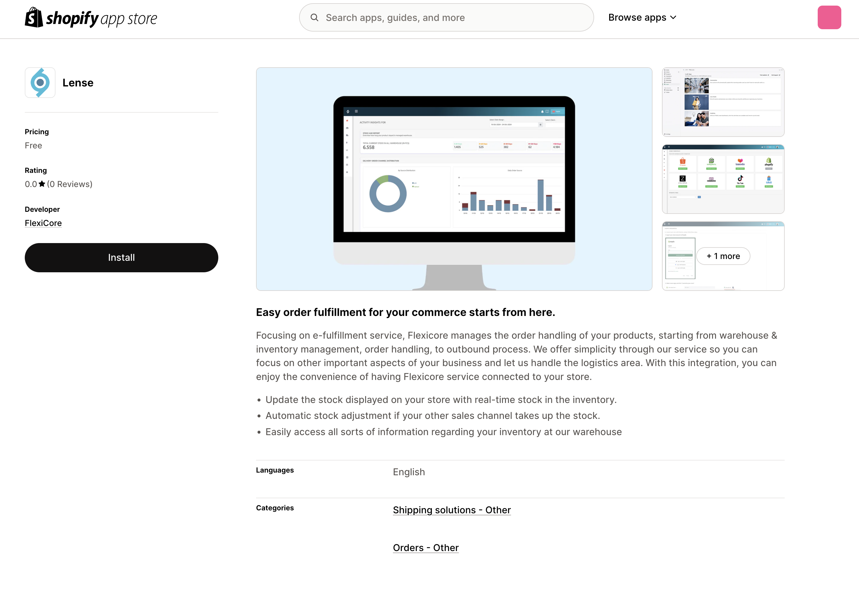 Install Lense app in Shopify Apps Store