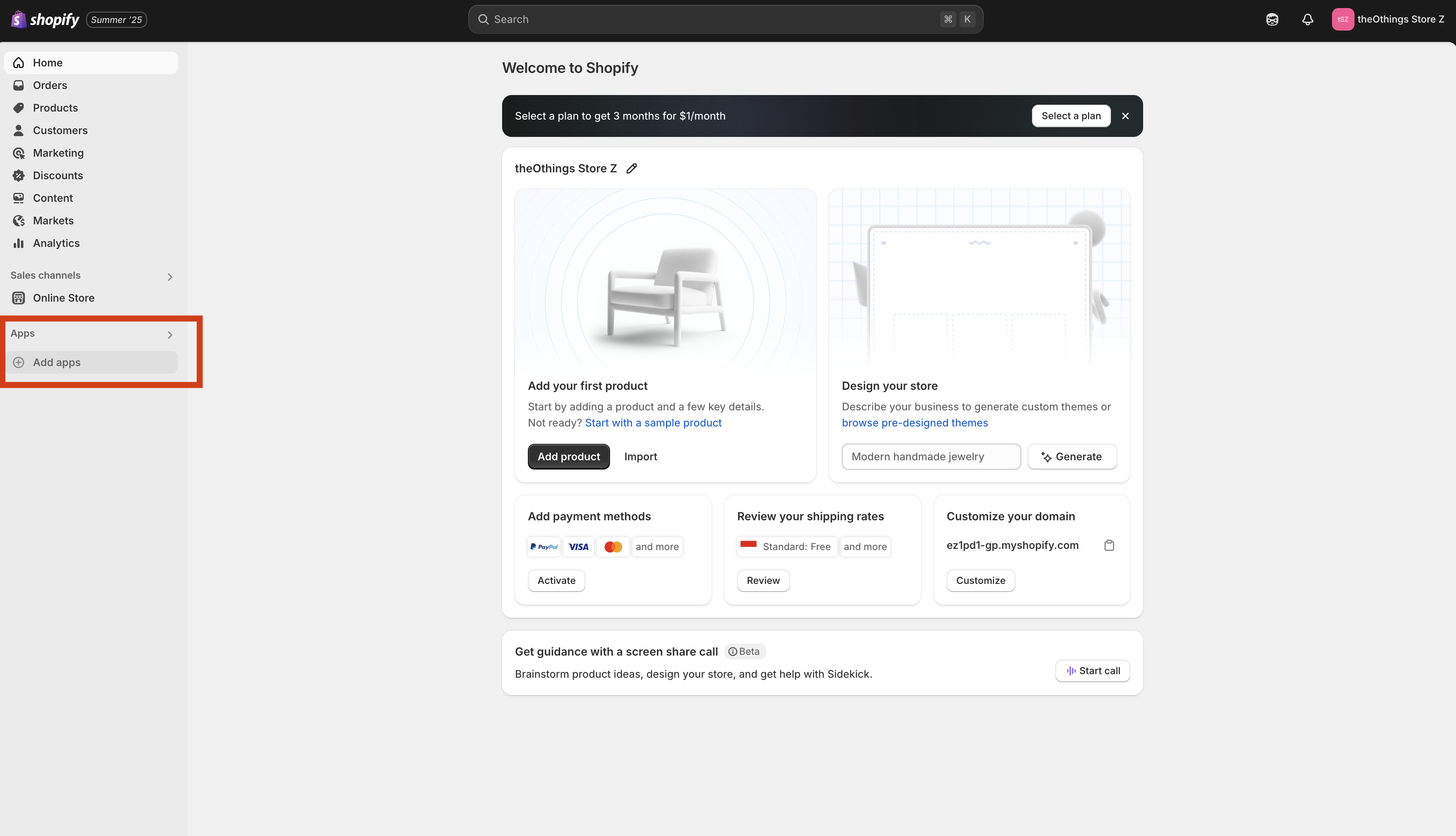 Log in your store account at Shopify