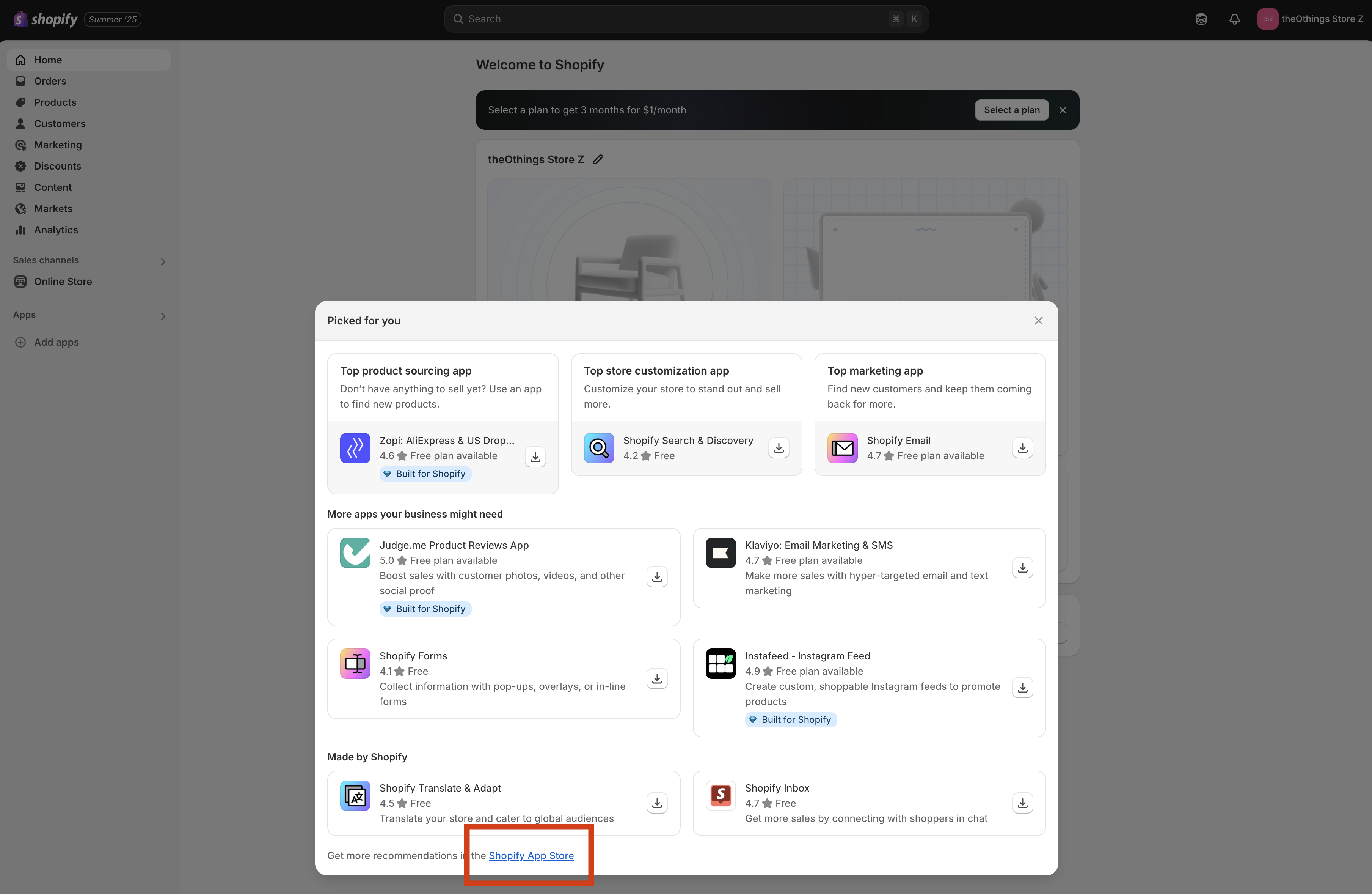 Click “Shopify App Store”