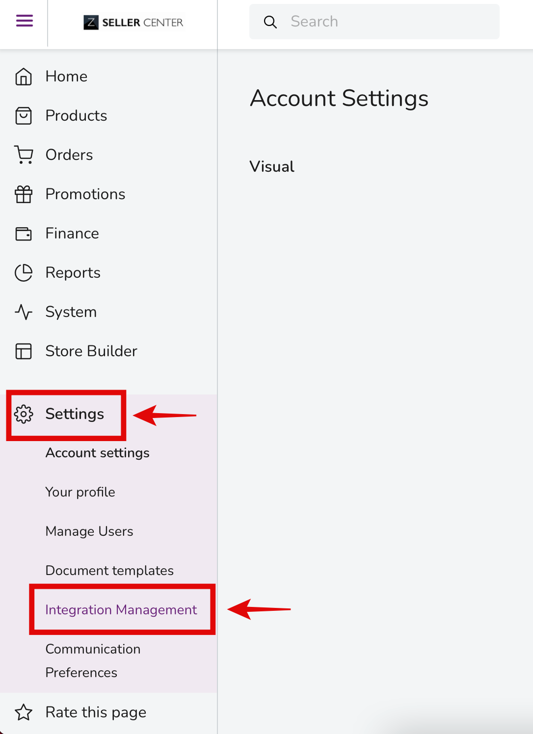 Select menu Settings and Choose "Integration Management"